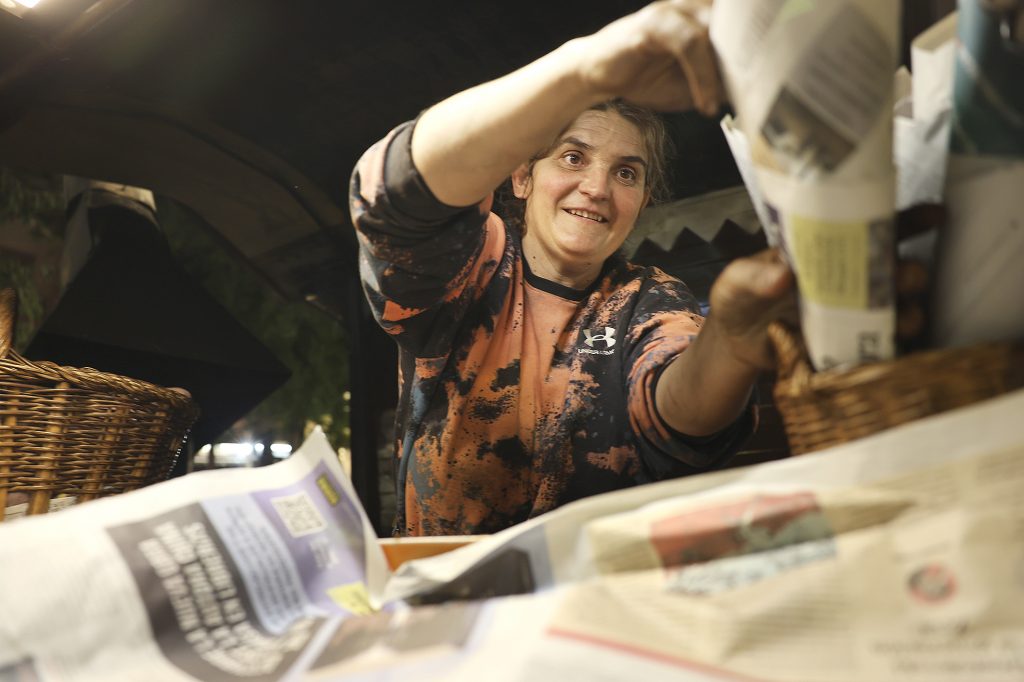 A pocs carrers, a la plaça de la Corona, l’Alejandra també passa la tarda traient les castanyes del foc. En el seu cas, està vivint la seva segona tardor com a castanyera. “Mai havia fet castanyes abans, perquè soc de fora”, explica. Malgrat això, es mostra sorpresa per la resposta del públic: “La gent s’anima molt a comprar.” I és que aquest any, assegura, ha tingut encara més clientela que el darrer.