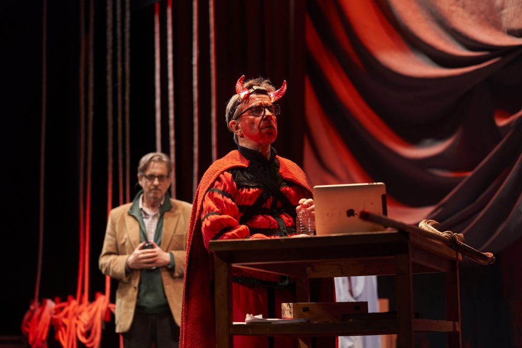 Paco Mir dirigeix aquesra tragicomèdia. S’acosta Nadal, dos amics han quedat a 2/4 de 8 del vespre al Cercle Artístic del seu municipi. Allà fa anys que interpreten respectivament l’arcàngel Sant Miquel i Satanàs en els Pastorets locals. El que interpreta Satanàs aquest any no podrà: acaba de perdre un recurs d’apel·lació, li toca complir pena de presó. Li demana a l’amic que el substitueix. A l’amic, però, li costa ser dolent. El veterà li ensenya els ressorts que cal activar perquè aflori la maldat necessària per ser un bon Satanàs.